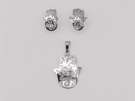 Juego mano de Fátima calada de plata