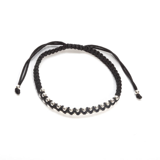 Pulsera de hilo ajustable con esferas de plata intercaladas.