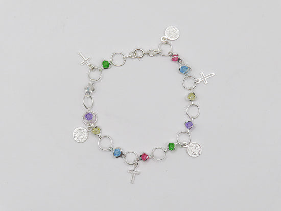 Pulsera de plata religión cristales multicolor